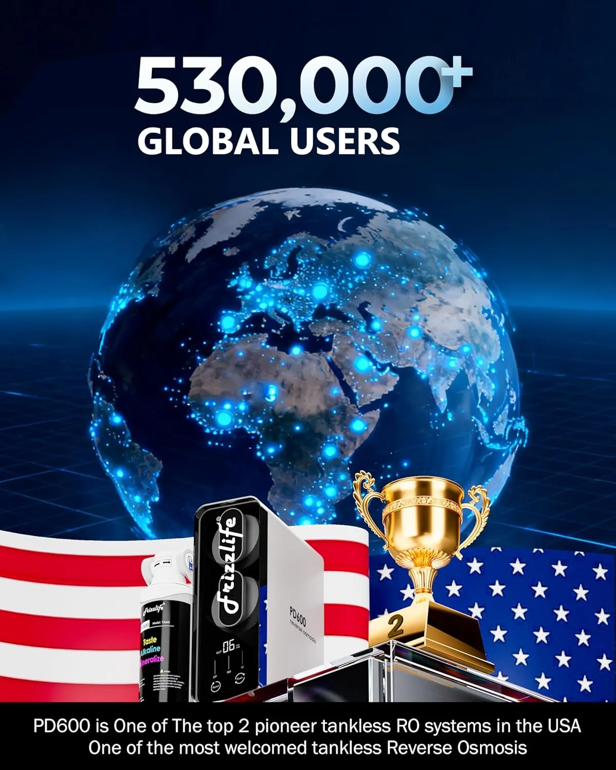 The Frizzlife PD600 Reverse Osmosis Water Filtration System is a powerful under-sink RO purifier designed to deliver clean, safe, great-tasting water directly from your kitchen tap. With a tankless, space-saving design, high 600 GPD water output, and installation included, this system ensures reliable performance without complex setup.