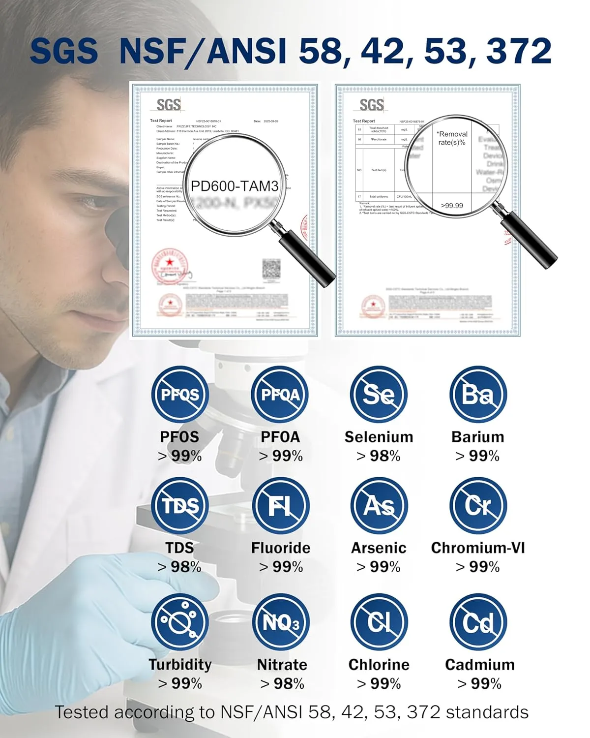 Reduces harmful substances like lead, chlorine, fluoride, VOCs, and more